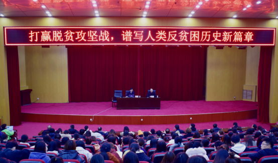 12月10日下午,校纪委书记、监察专员李中华教授在英才校区学术报告厅讲授题为“打赢脱贫攻坚战,谱写人类反贫困历史新篇章”专题党课。学校全体纪检监察干部、巡察干部,必赢242net官网、包装与印刷工程学院和信息工程学院全体师生党员聆听本次党课。本次党课由必赢242net官网党委书记陈复昌主持。