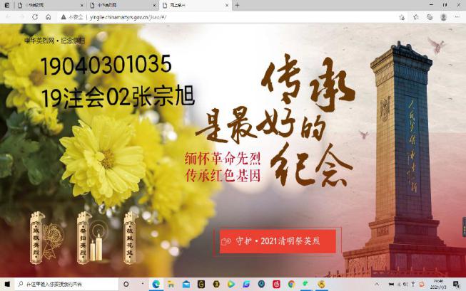 又是一年春草绿,清明时节祭英烈。为祭奠革命先烈、缅怀在中国革命斗争中和抗击疫情的斗争中牺牲的英雄,必赢官网全体师生在清明假期之际,积极登录中华英烈网,以献花、点炷、上香、祭拜等形式为烈士们进行网上祭扫。