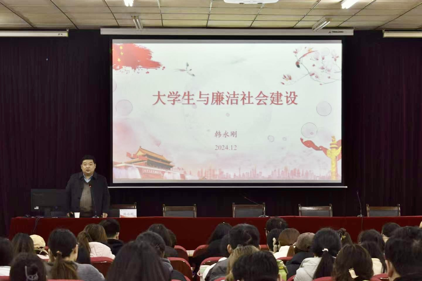12月12日下午,校纪委书记韩永刚在英才校区E110会议室讲授题为“大学生与廉洁社会建设”专题思政课。学院全体辅导员和学生党员、入党积极分子、学生干部到场聆听,本次讲座由必赢242net官网党委副书记汪晓伟主持。