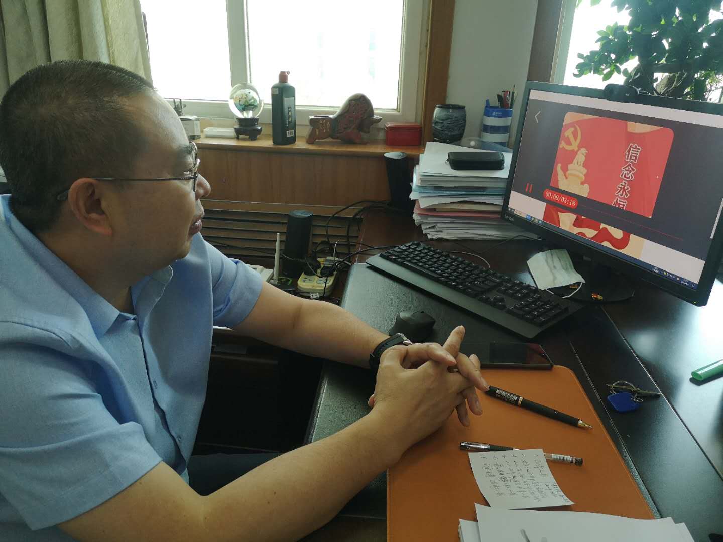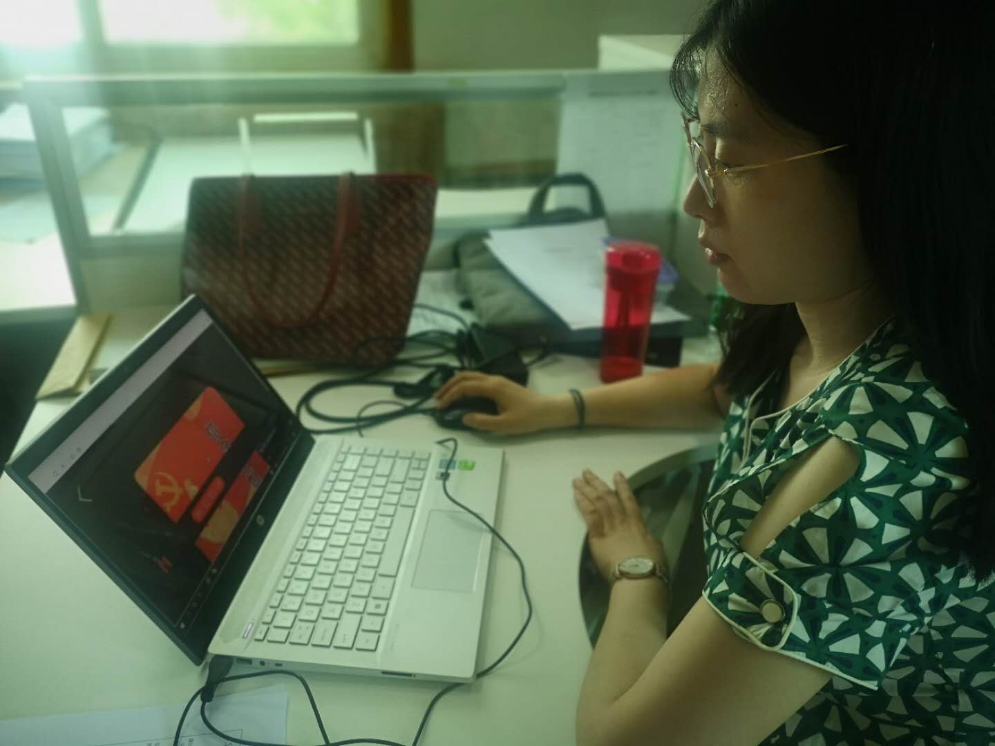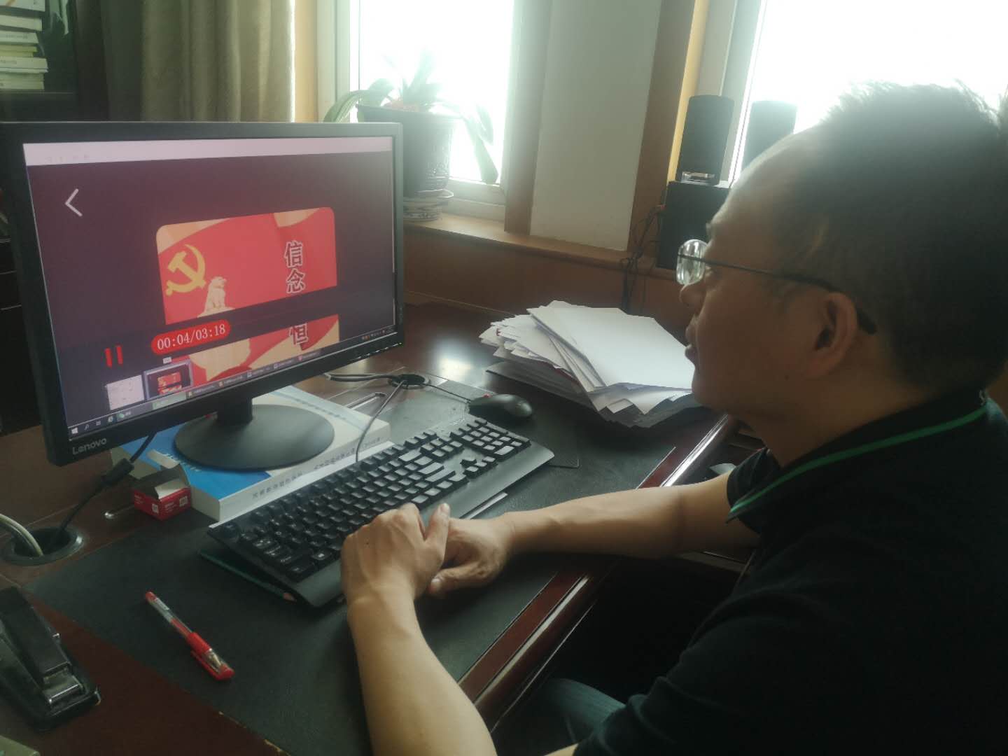 之后,大家带着激情澎湃的心情一起收听了《党旗,我要对你说》的诗歌朗诵,并观看了中央电视台《薪火相传》的初心与使命系列:《建党伟业》,从中更加深刻的了解到中国共产党的发展的光辉历程,也再次重温了中华民族伟大复兴和崛起历程,切实感受到中华民族不懈奋斗的优良传统。在大家激情澎湃的爱党情怀当中,我们深入学习了“从总书记讲话中感受“世界第一大党的荣光””,从而再次认识到中国共产党是一个能够经受起各种考验、愈挫愈奋的伟大政党,是不断创造出难以置信传奇业绩的政党。砥砺前行99年,中国共产党在不断壮大,并带领着中华民族经历了各种风险考验,带领中国人民从胜利走向新的胜利。