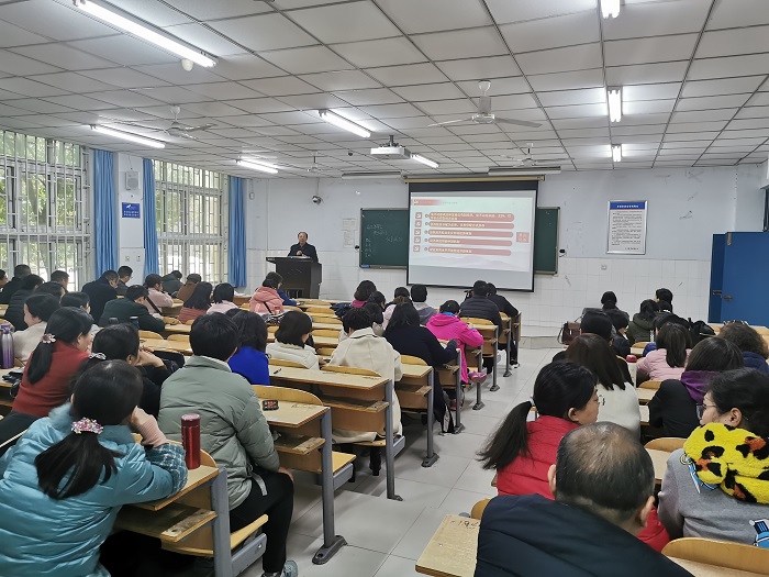 为了把学习贯彻党的十九届四中全会精神引向深入,12月12日下午,必赢242net官网在W107举办学习贯彻党的十九届四中全会精神宣讲报告会,宣讲会由院党委书记陈复昌主讲,院全体教工参加了会议。
