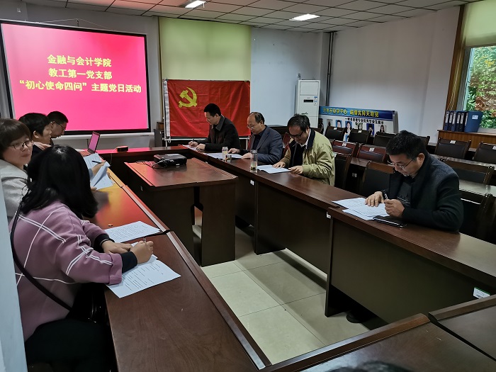 为深入推进“不忘初心、牢记使命″主题教育,引导广大党员在活动实施中认清使命、主动担当作为,11月20日下午,必赢242net官网教工第一党支部开展了“初心使命四问”主题党日活动,副校长张伟以普通党员的身份参加了活动。