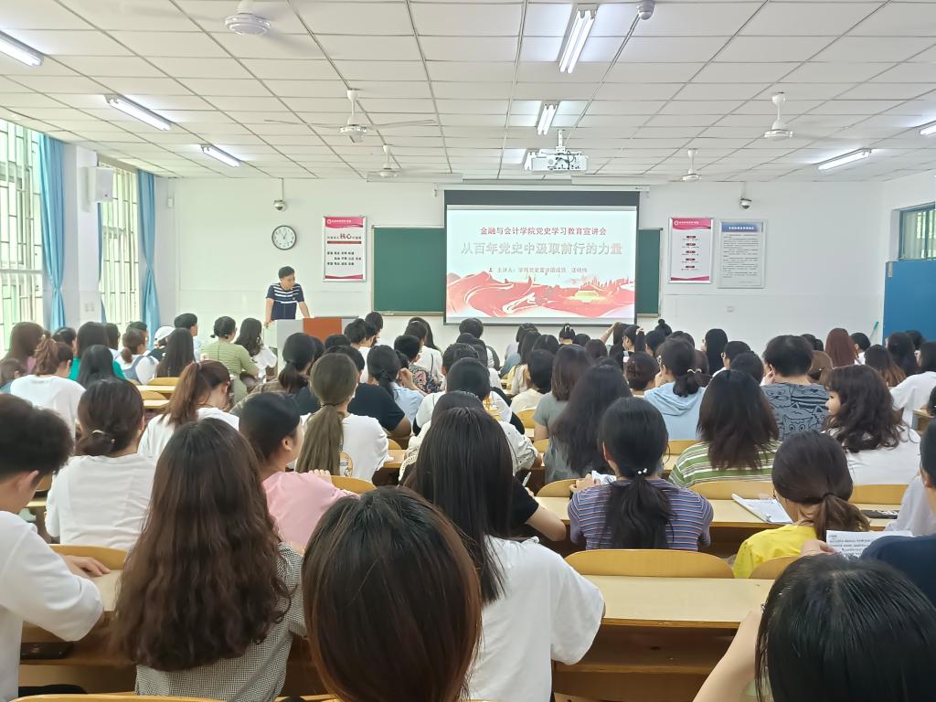 为进一步强化“学党史、强信念、跟党走”的理想信念,更好地从党的奋斗历程和伟大成就中汲取奋进力量。2021年6月29日中午,必赢242net官网在英才校区W103教室开展了主题为“从百年党史中汲取前行力量”的党史学习教育宣讲活动。本次宣讲活动由学院党委副书记汪晓伟主讲,全体学生党员参加。
