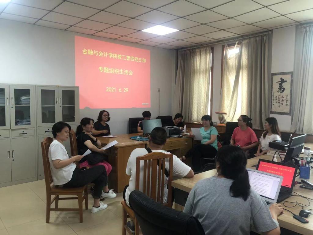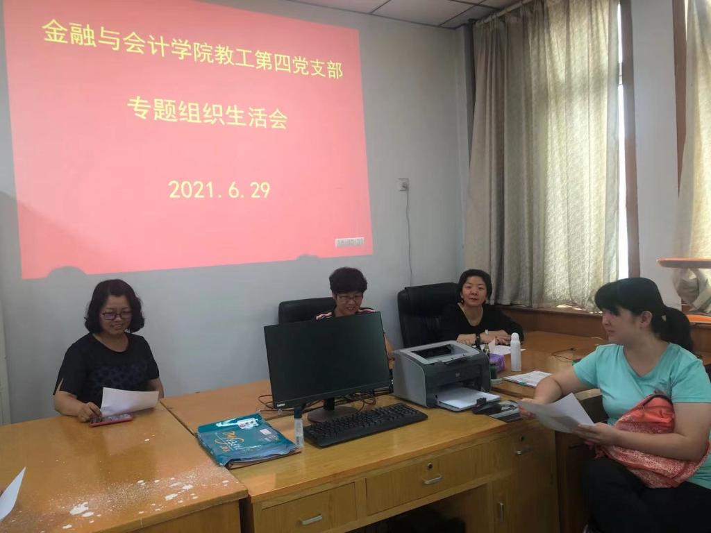 按照学校组织部《关于开展2021年6月份党支部主题党日活动的通知》精神和具体要求,6月29日下午,必赢242net官网教工第四党支部在510室召开了党史学习教育专题组织生活会。会议由党支部书记邓瑜主持。