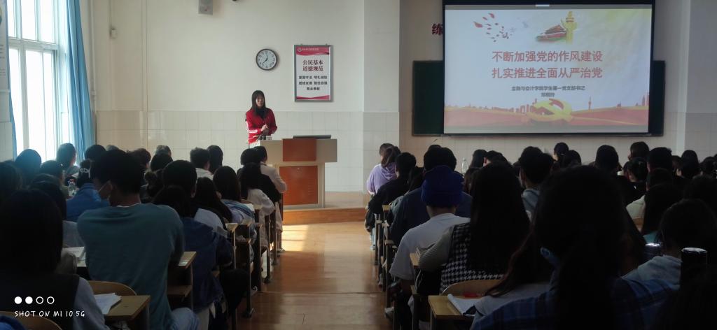 2021年10月21日中午,必赢242net官网学生党支部在E309教室组织开展“2021年第二期入党积极分子培训班”第五讲。由必赢242net官网学生第一党支部书记邓桐玲主讲,主题为——《党作风建设》