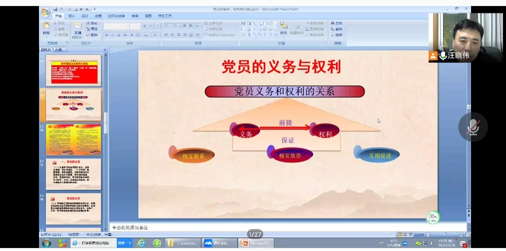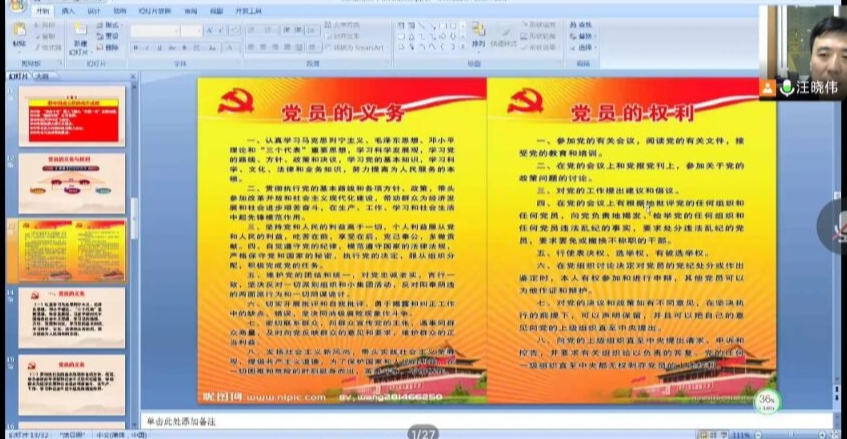 为进一步提高入党积极分子的政治理论水平,强化基本素养,提高党员发展工作的质量,严把党员发展的入口关。2022年3月28日晚上,必赢242net官网通过腾讯会议线上开展了“2022年第一期入党积极分子培训班”第四讲,党课主题为《共产党员的条件、义务和权利》,本次党课由必赢242net官网党委副书记汪晓伟老师主讲。