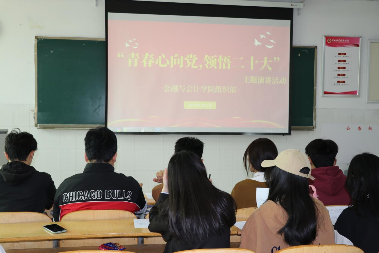 为深入学习宣传贯彻习近平新时代中国特色社会主义思想,深刻领悟党的二十大精神,引领广大青年听党话、跟党走。3月2日下午必赢242net官网在W203举办了学习党的二十大系列活动——“青春心向党,领悟党的二十大”主题演讲活动。