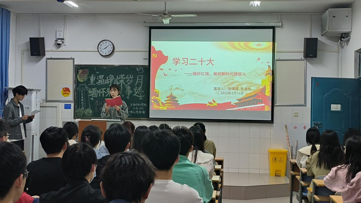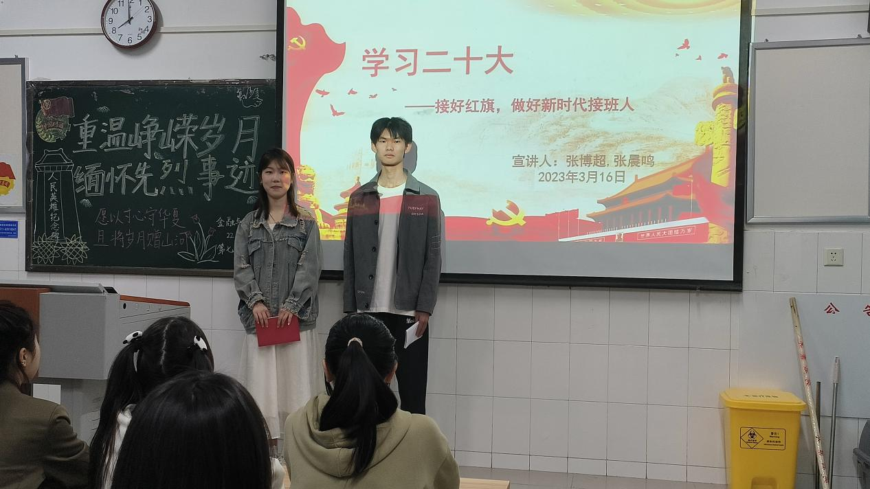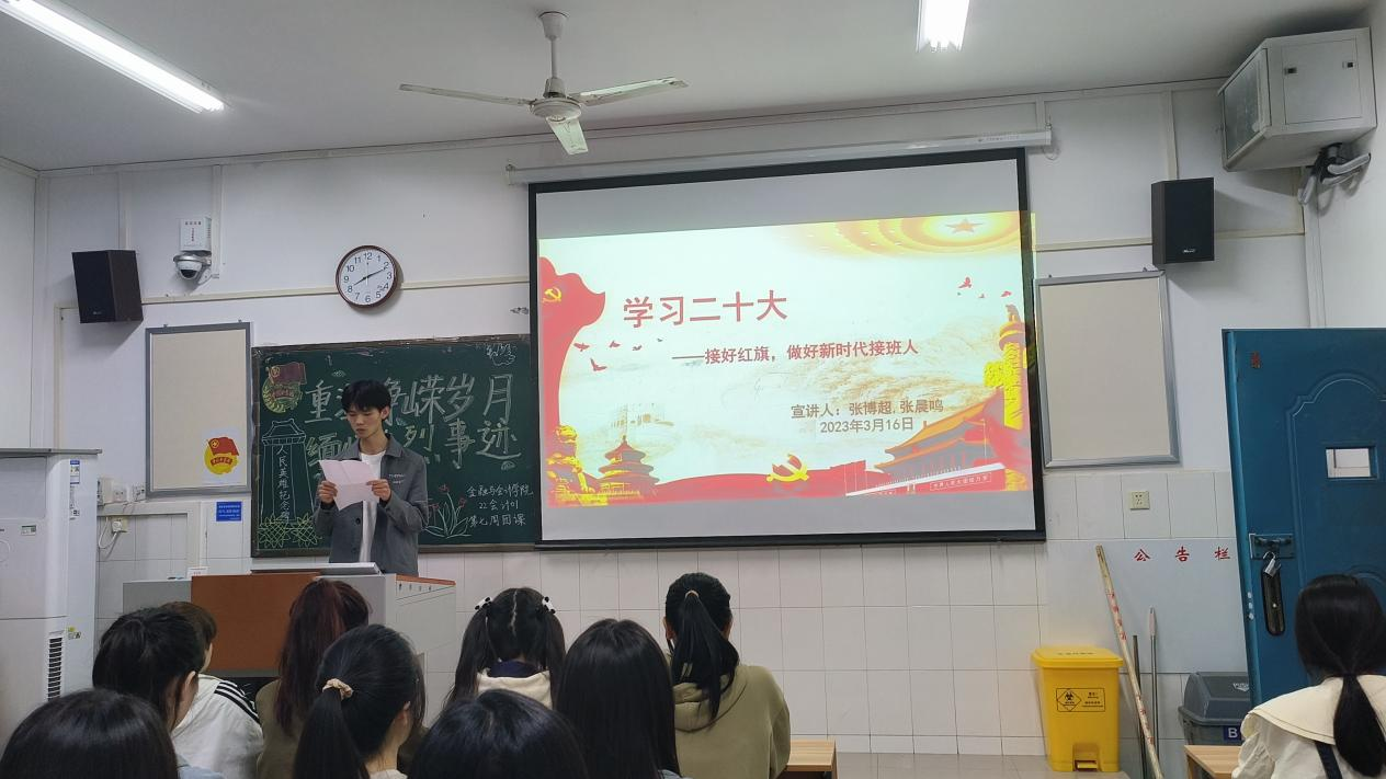 学习党的二十大精神,对于当代青年强化思想引领、增强政治认同、培养爱国主义情怀,具有重要意义。必赢242net官网学习党的二十大精神宣讲团于3月30日晚走进22会计01班,开展了雷锋月最后一次以“学习党的二十大,争做新时代青年”为主题的宣讲活动。本次主讲人为22会计01张博超同学和22会计01张晨鸣同学。