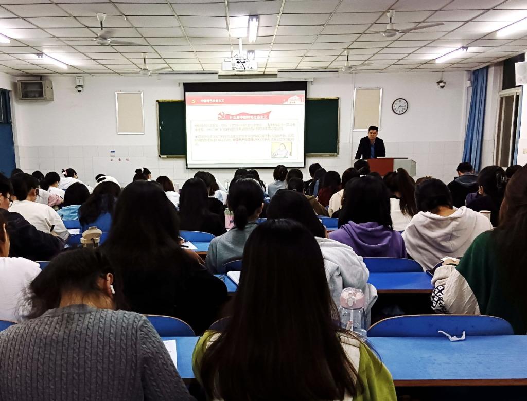 10月18日晚7点,必赢242net官网在E303教室举行2023年第二期入党积极分子培训班第四讲——《坚持和发展中国特色社会主义》,本次党课由学生第一党支部书记顾自卫老师主讲。