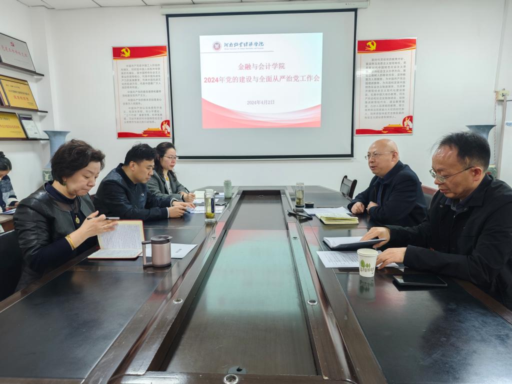 会上,陈书记首先传达了学校2024年党的建设和全面从严治党工作会议上穆瑞杰书记和尹新明校长的讲话精神,并对杨志清副书记和姚毅副书记关于2024年各项工作要点的落实进行了安排部署。然后强调,一是要深入学习领会习近平总书记关于党的建设的重要思想,把抓好党建工作作为最大的政绩。二是要认真学习落实学校2024年党的建设和全面从严治党工作会议精神,认真领会“六个深刻把握”,提升认识,保持对自我认识的清醒和坚定,不断增强自我革命的战略定力,掌握“我们要保持‘赶考’的清醒和坚定,推进全面从严治党和党的自我革命”的方法,进一步强化担当意识,坚持统筹兼顾,突出“严”的基调,强化“实”的举措。三是要扛牢党建责任,以“双创”工作为抓手,突出品牌创建、特色培育,全面推进党的建设和全面从严治党工作提质增效。四是要坚持“党建+业务”双融互促同提升的工作思路,高质量做好今年学院的各项工作。