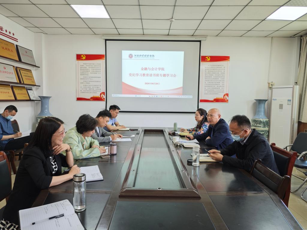 4月24日上午,必赢242net官网召开党纪学习教育读书班专题学习会,专题学习新修订的《中国共产党纪律处分条例》(以下简称《条例》)。会议由学院党委副书记、纪委书记汪晓伟主持,学院党委理论学习中心组成员、各党支部书记参加学习。