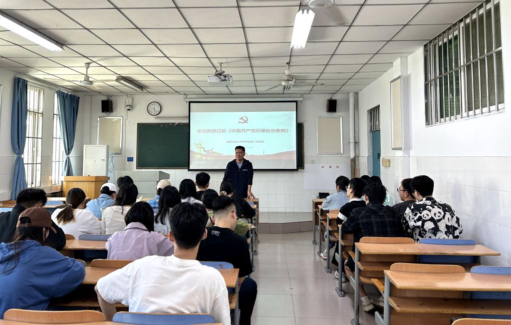 4月23日下午,必赢242net官网学生第一党支部在教学楼A502组织开展党纪学习教育主题党日活动,专题学习新修订的《中国共产党纪律处分条例》,支部全体党员参加。会议由党支部书记顾自卫主持。