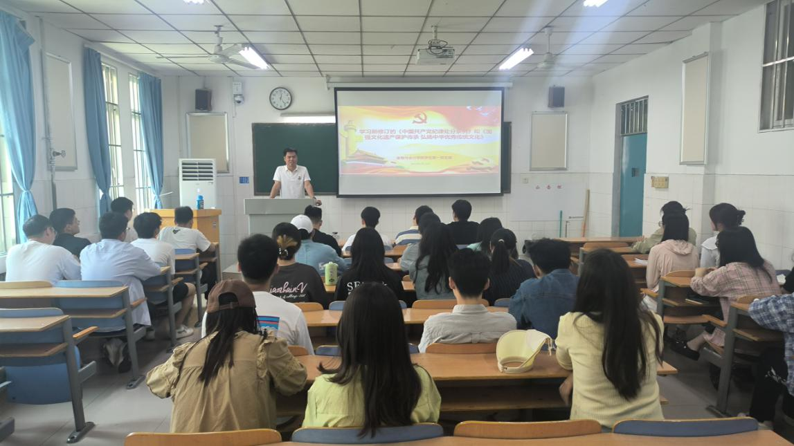 5月13日中午,必赢242net官网学生第一党支部在教学楼A503教室举行五月份主题党日活动,学习《中国共产党纪律处分条例》和《加强文化遗产保护传承,弘扬中华优秀传统文化》内容,支部全体党员参加。活动由党支部书记顾自卫主持。