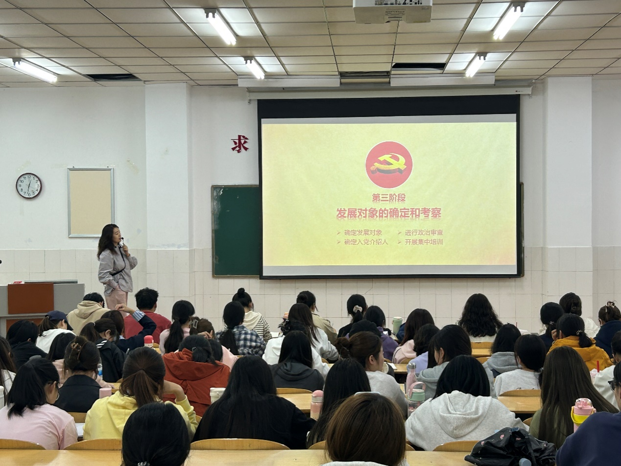 10月18日中午,必赢242net官网在E209教室举行2024年第二期入党积极分子培训班第七讲——《大学生入党须知及注意事项》,本次党课由学生第五党支部书记张珂瑜主讲。