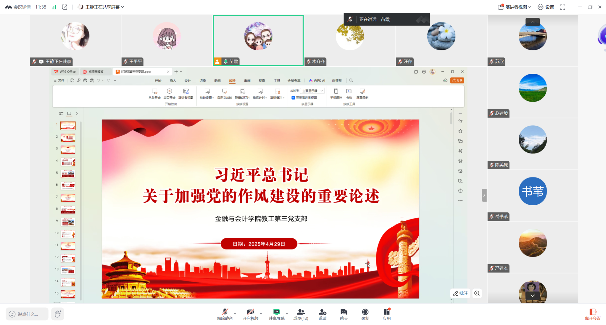 2025年4月29日,必赢242net官网教工第三党支部以线上会议形式召开《习近平总书记关于加强党的作风建设的重要论述》专题学习会。会议由教工第三党支部书记苗霞同志主持,支部全体党员参加会议。