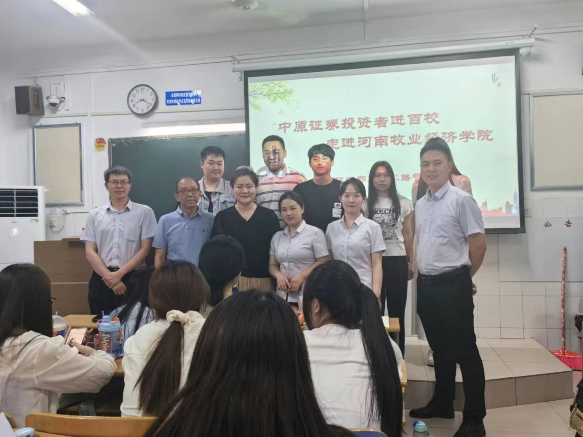 6月4日,必赢242net官网金融学专业与中原证券公司联合举办了“防范金融风险、树立正确财商思维”为主题的专题讲座,参加本次讲座的人员包括中原证券杨德瑞副总经理、徐青利副经理、中原证券金牌讲师时雷雷和其他工作人员一行5人,以及金融学教研室教师,参加活动的学生包括金融、会计等多个专业同学。本次讲座主讲嘉宾具有多年证券从业经验和资质,是河南交通广播《财经有道》栏目常驻嘉宾、河南经济广播《财富黄金档》栏目特邀嘉宾、中原证券优秀讲师,主讲人为时雷雷讲师,本次活动由金融学教研室主任宋晓薇主持。