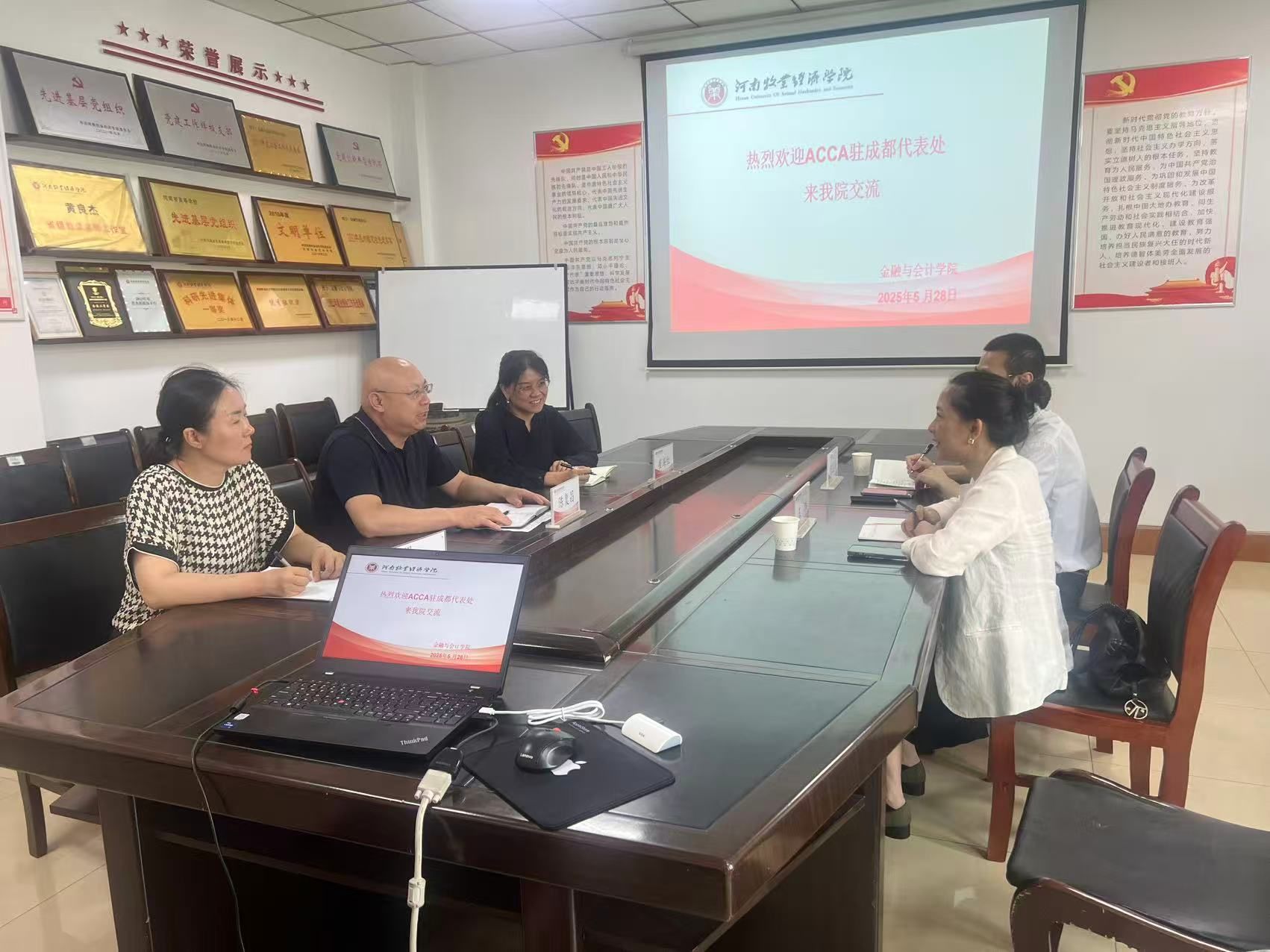 2025年5月28日,ACCA驻成都代表处客户关系经理王玮和张玉平必赢官网交流座谈。必赢242net官网书记陈复昌、副院长崔海红以及ACCA专业负责人李敏敏老师参加交流活动。