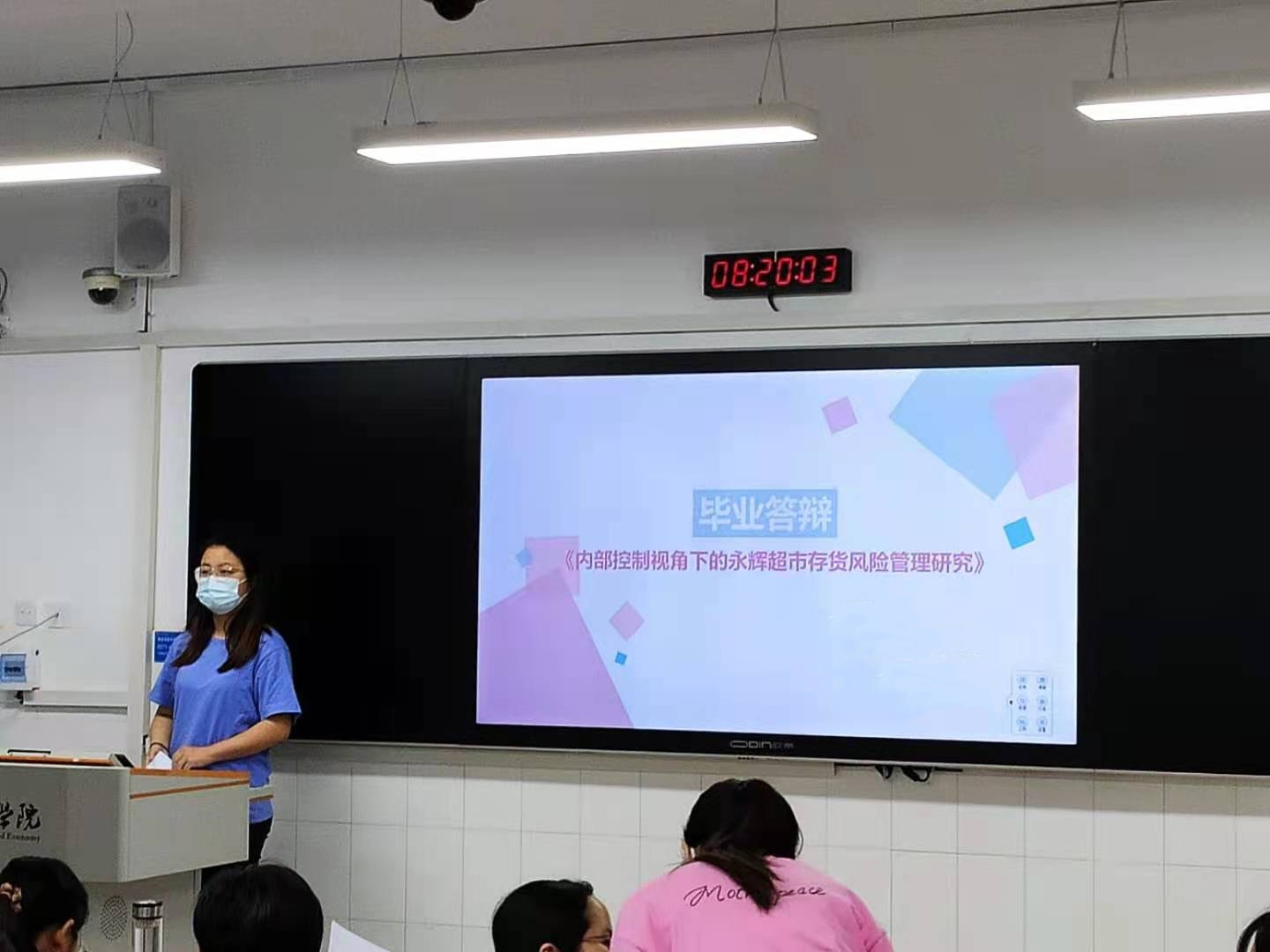 毕业论文答辩现场,毕业生通过PPT演示从论文选题立意、研究路径和方法、研究内容等方面进行了详细汇报。每位学生汇报结束后,由答辩组专家就学生论文所涉及专业问题进行提问,学生回答后针对学生论文存在的书写规范、逻辑结构、方法选用等提出进一步修订完善的建议。最后,答辩结束,答辩组根据参加答辩的同学的汇报情况、回答问题、论文送审后的修改等方面做出客观公正的综合评价,并给出最终答辩成绩。会计学专业整个答辩过程井然有序,顺利完成了毕业论文答辩工作。