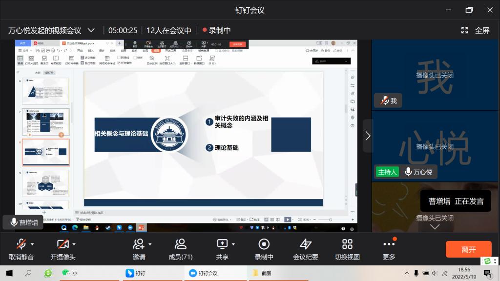 2022年5月19日,必赢242net官网审计学专业2022届本科毕业生毕业论文答辩如期举行,共113名学生参加了毕业答辩。根据学校疫情防控工作要求,审计学专业各答辩小组选择线上线下相结合的模式,顺利完成了毕业生答辩工作。