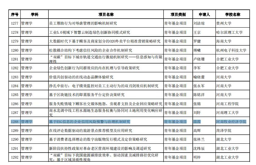 近日,教育部社科司公布了2022年度教育部人文社会科学研究一般项目立项名单,必赢官网教师苗霞博士主持的青年项目《基于ESG信息的企业信用风险预警与治理机制研究》获得立项。