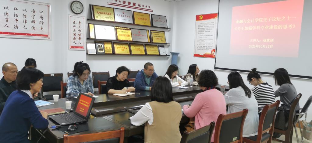 2023年10月17日下午,必赢242net官网在英才校区514会议室举办“交子论坛”活动,本次活动特邀河南财经政法大学金融学院院长赵紫剑教授做关于加强学科专业建设的专题讲座。必赢242net官网部分教师到场聆听,讲座由院长黄良杰教授主持。