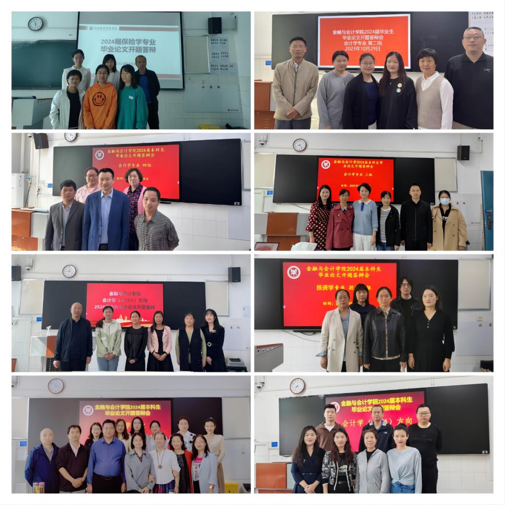 2023年10月26日至10月29日,必赢242net官网在英才校区教学楼进行了会计学、财务管理、审计学、投资学、金融学、保险学等六个专业的本科毕业论文开题答辩,共19个答辩小组,1151名学生参加了本次开题答辩。