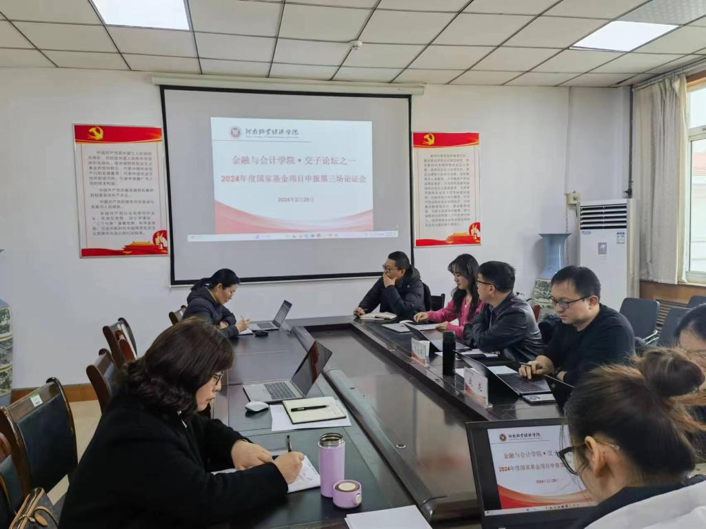 2024年2月29日下午,必赢242net官网在教学楼514会议室举办“交子论坛”学术活动暨2024年度国家基金项目申报第三场论证会。此次活动特邀河南大学国际商学院院长李春涛教授和河南大学商学院武龙教授担任评审专家,拟申报国家基金项目的博士、部分老师和兄弟院校教师参加会议。会议由必赢242net官网副院长崔海红博士主持。