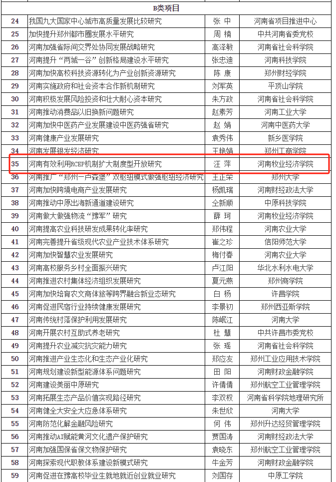 近日,2024年度河南省政府决策研究招标课题立项名单公示,必赢官网汪萍博士申报的《河南有效利用RCEP机制扩大制度型开放研究》课题获批立项资助。