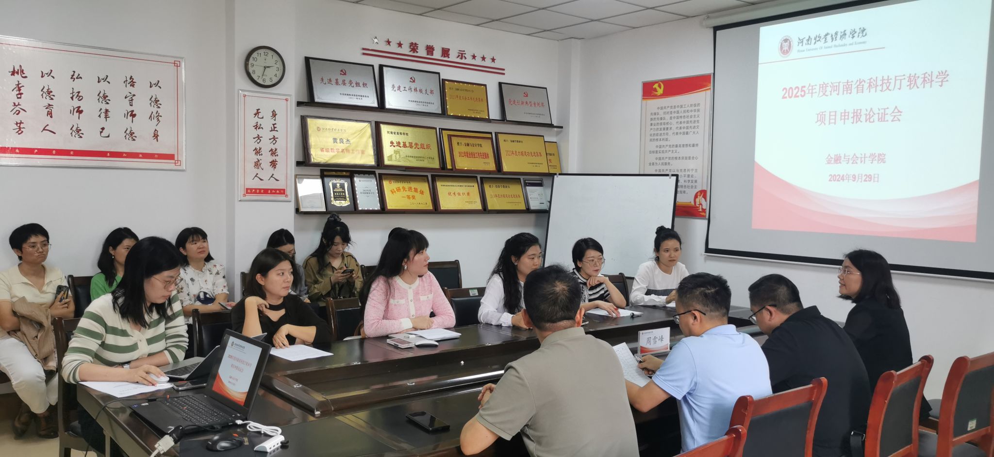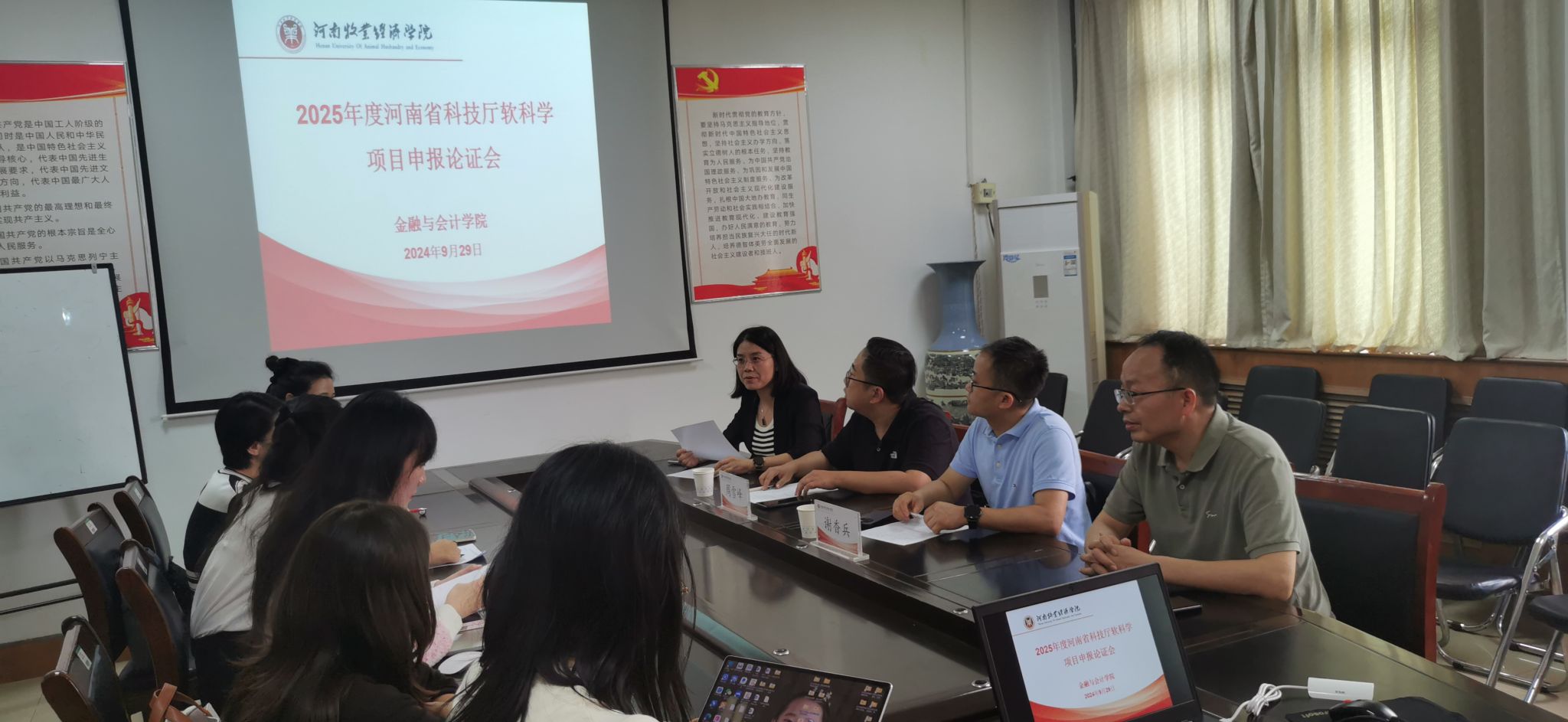 为进一步鼓励必赢官网教师积极参与科研项目申报,提高河南省科技厅软科学项目申报质量,不断提升科研能力与水平。2024年9月29日下午2:30,必赢242net官网在教学楼514会议室召开2025年度河南省科技厅软科学项目申报论证会。本次论证会邀请河南财经政法大学会计学院院长谢香兵教授和郑州航空工业管理学院商学院副院长周雪峰教授作为评审专家。必赢242net官网院长贾宪军教授、项目负责人及部分教师参加了论证会。会议由副院长崔海红博士主持。