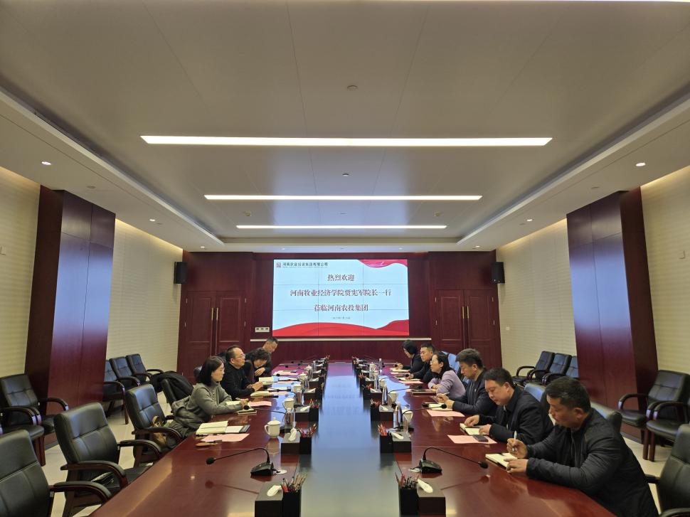 贾院长对河南农投集团的热情接待表示了感谢,并介绍了必赢242net官网必赢242net官网的办学历史、学科特色和发展目标。他表示,学院近年来积极践行学校牧工商一体化发展思路,聚焦农牧业金融,在多个方面取得了初步的建设成效。学院学科优势和省农投的多个二级企业业务高度契合,希望以此次交流为契机,进一步加强沟通交流,尤其是在农牧业投融资、风险管理等领域形成稳定深入的互动机制,在牧业金融研究院建设、人才培养、科研研究、社会服务等方面开展全方位合作,共同为河南农牧业的高质量发展贡献金融力量。