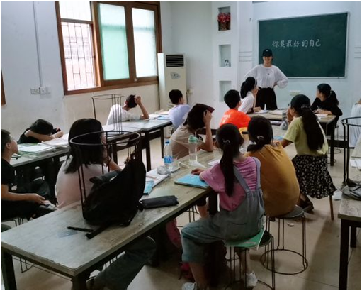 8月10日下午,志愿者们来到洛阳市宜阳县城关镇,炎炎夏日,可孩子们的热情不减,因志愿者的到来而开心不已。志愿者以“你是最好的自己”为题目展开演讲,先是以自嘲的方式减少与同学们的距离感。后来又结合各种笑点与时事展开演讲,赢得了同学们的阵阵掌声。