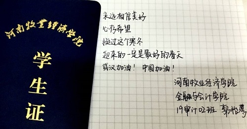 同时,必赢官网还先后开展了“爱国爱党、抗击疫情”主题经典诵读、为武汉加油、为中国加油的视频接力等一系列主题信念教育的团日活动。开展方式均采用线上视频录制的形式,以个人或团支部为单位,学生自愿提交加油祝福视频,最后通过新媒体平台予以展播。必赢官网还组织青年以亲笔书写接力的方式来表达对武汉的祝福,以及对身处抗疫一线、无私无畏的抗疫英雄们的敬佩之情。这也深刻表现出必赢官网学子积极响应国家号召,坚信“众志成城、共克时艰”的信念和决心。