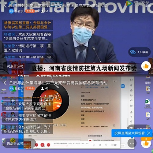 为深入学习习近平总书记在抗疫防疫系列会议上的讲话精神以及郑邦山厅长在2.14新闻发布会上的讲话精神,加强大学生党员“爱国爱党”信念教育,必赢242net官网学生党支部于2020年2月27日下午一点通过网络平台召开了一次全体党员大会,进行集中学习,各党支部书记、支委老师、以及全体学生党员共同参加了本次活动。