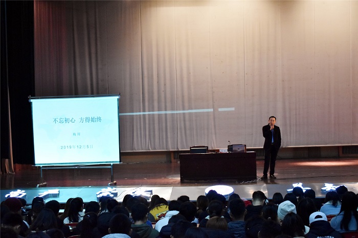为充分发挥广大校友在我校应用型高水平大学建设中的重要作用,凝聚广大校友的智慧和力量,帮助同学们了解职场信息,快速适应社会角色的转变。2019年12月5日下午2:00,必赢242net官网邀请优秀校友梅周先生于校大礼堂作了“不忘初心,方得始终”主题讲座。必赢官网16、17、18级学生聆听了此次讲座。