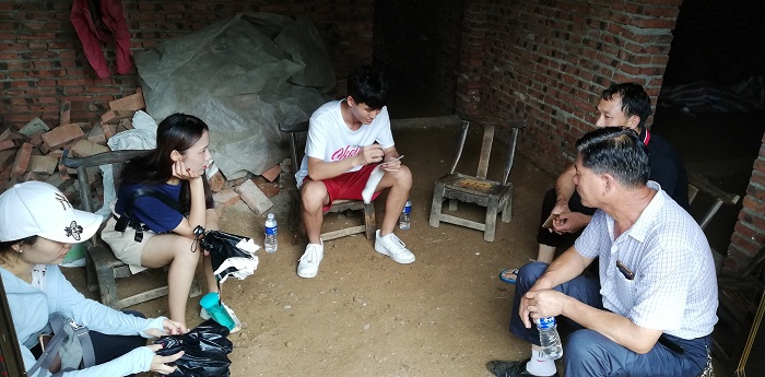 下午,志愿者服务队走访了两户村民。两家相隔较近,其中达盐店的一户人家,新房子还在建设当中,目前都一家人都睡在一个小的卧室内,家主今年47岁,初中毕业,家中五口人,主要经济来源为外出打工,人均年收入5000以上,家中老人生病需要花费大量医药费,因病致贫,有两个孩子,都在外地上小学,平时外出打工时都把老人带在身边。另一户村民家的家主前年在外务工左腿受伤,住院花费大量医药费医治好后恢复了半年,但之后旧伤又复发重新住院医治,三年内家中除了种植获得的微薄收入外再无其他收入,家中生活困难,五口人有三个孩子,大儿子今年考上鲁山县第二中学,希望得到精准扶贫有关现金方面的帮助。