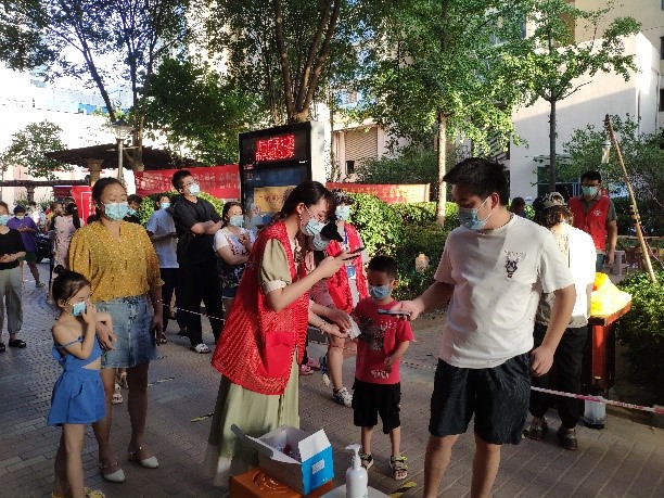 洪水过后,疫情接踵而来,王凡同学的家正处于疫情中风险地区。在被封控的二十多天里,她积极报名加入社区志愿者,在封控区内开展志愿服务,帮助社区工作人员录入信息、维持核酸检测秩序、帮助小区居民进行扫码检测等。从自身做起,发挥模范带头作用,鼓励更多的人像她一样加入到志愿者的行列中。