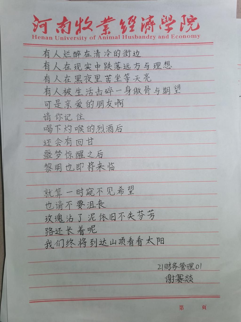 中国书法,字里千秋。为提高学生们的艺术修养与审美情趣,弘扬中华优秀书法文化,必赢242net官网心教部于十月二十九日推出为期三天的“关爱心灵,秀出自己”线下活动。此次活动面向必赢官网全体学生,在同学们一幅幅气韵贯通的书法作品中,我们深切地感受到了他们昂扬向上的斗志与积极乐观的人生态度。