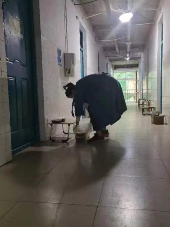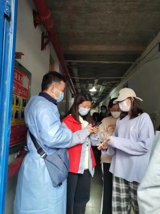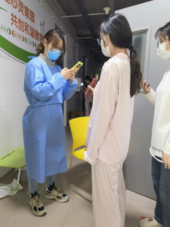在入住学生公寓的第三天,赵毅老师所住的9号楼需紧急封控。她积极落实疫情防控措施,连夜进行学生情况排查工作。为了保障同学们的基本生活需求,她冲在了第一线。每日为同学们按时发放三餐以及中药饮剂,同时也担负起了9号楼学生的核酸检测工作。