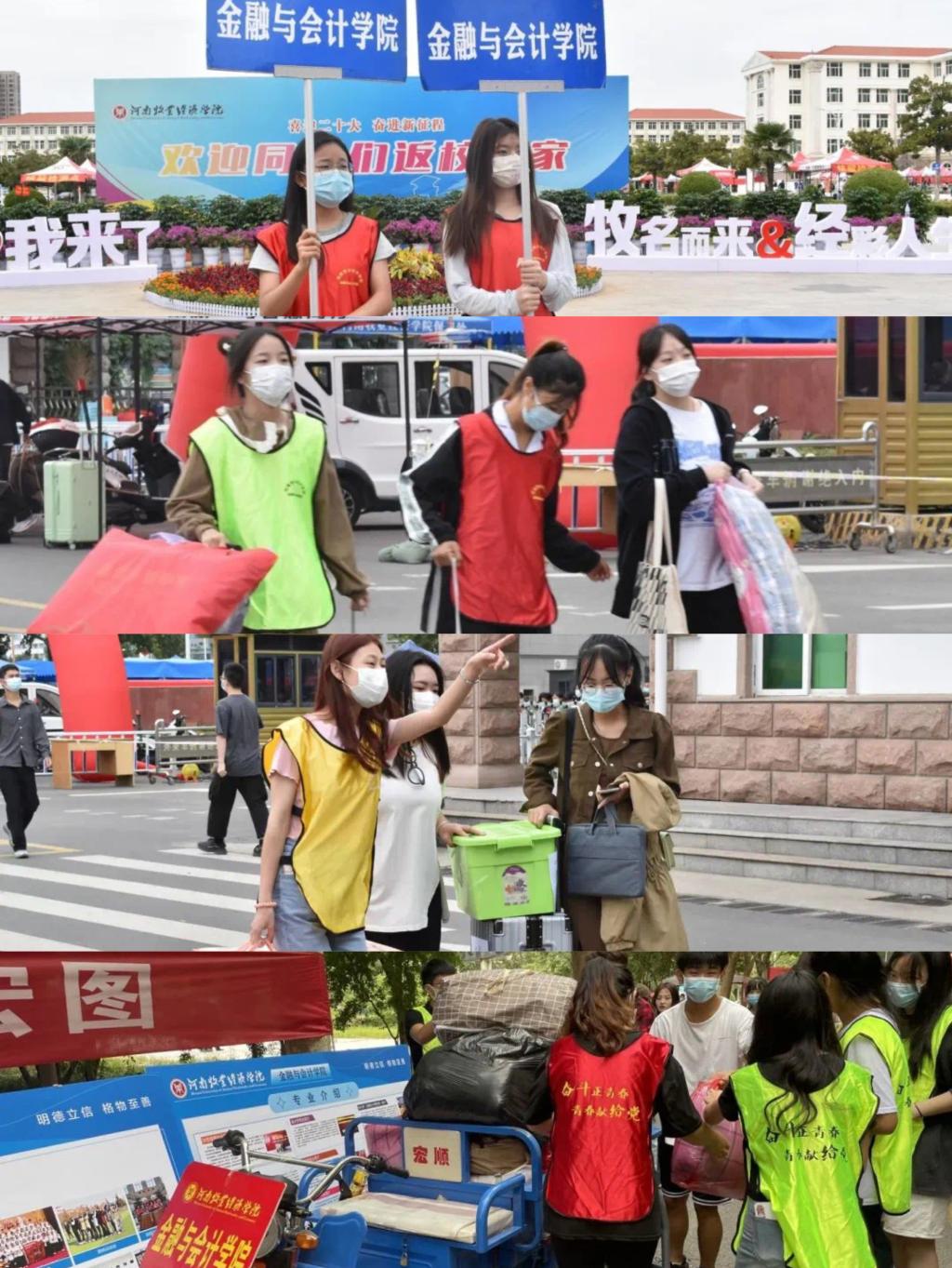 白露未已,晨光熹微。早上六点半,学院领导、老师们和志愿者们已经在新生报到处热情等候。学院领导对同学们的到来表示热烈欢迎和亲切问候,由于疫情,新生家长无法进校,为了让家长放心、学生安心,学院从团学会、各班级、学生党支部组织了超过200人的迎新志愿者服务队。沉重的行李箱,巨大的编织袋,汗水打湿了志愿者们的衣服,但他们依旧不辞劳苦,一趟趟地在校门和宿舍楼间往返,充分向新生展示了精诚合作,团结友爱的志愿者精神。