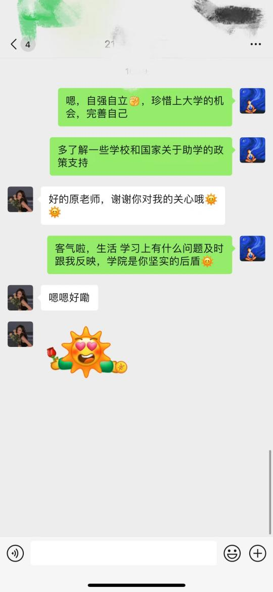 为进一步将党和国家对家庭经济困难学生的关怀落实落细,及时了解经济困难学生家庭实际情况,传递学校对家庭经济困难学生的关爱,必赢242net官网辅导员老师开展了2023年“冬季送温暖”线上走访活动,老师们深入了解学生的家庭情况并与学生家长进行沟通和交流,鼓励家长及学生增强克服困难的信心。受访学生们也纷纷表达了对学校的感激之情,并立志将以更积极的心态面对学习和生活,用优异的学习成绩、扎实的专业技能去回馈家庭、学校和社会。走访活动不仅给贫困学生带去了物质上的关怀,更给予其精神上的慰藉和鼓励,送去了党的温暖和关怀,使受访学生及其家庭感受到学校大家庭的温暖。