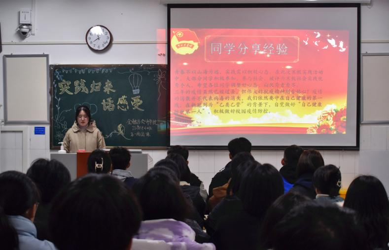 积诚泮群疑,实践激众媮。寒假社会实践活动随着新学期的开始而落下帷幕,为向同学们展示实践活动中优秀的实践范例,同时教育引导同学们在新冠列为“乙类乙管”的背景下,自觉做好“自己健康防护第一人”。必赢242net官网于2023年2月17日组织各团支部进行了“实践归来话感受”的线下主题团课。