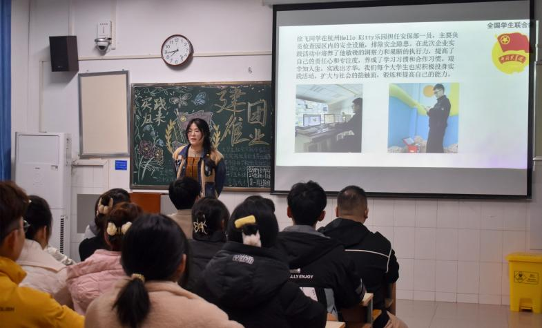 伴随着嘹亮的团歌声,各团支部组织的团课活动相继开展。各团支部也向同学们展现了寒假社会实践中的优秀范例以及寒假社会实践中同学们的实践感悟和经历,帮助同学们进一步了解社会实践所带来的益处,鼓励同学们树立远大的理想,明确自己的目标,为祖国的发展贡献一份自己的力量。作为新时代青年学子,应明确社会实践的重要性,树立服务社会的思想意识。