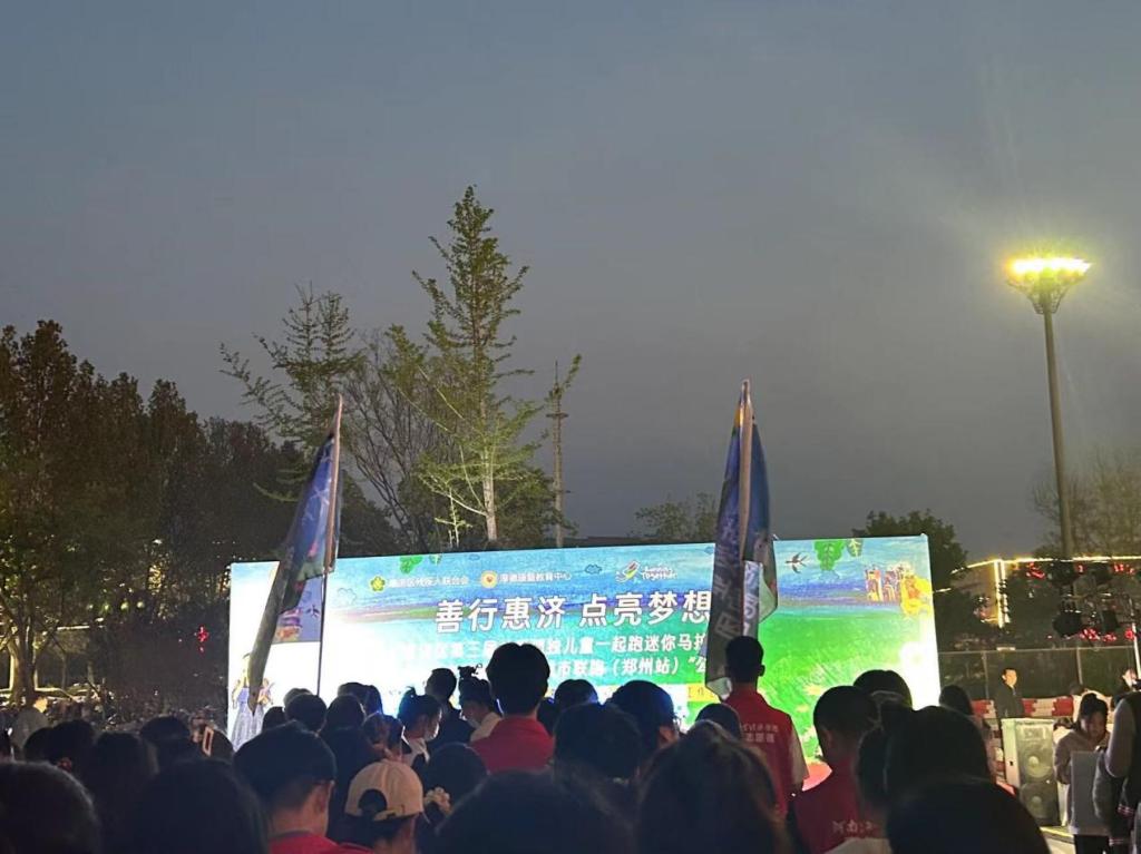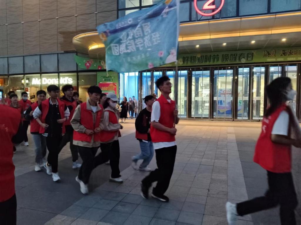 晚上七点,“点亮蓝色”全国公益连跑活动正式开跑。在开跑前,志愿者们统一着装,包括乐阳志愿者协会在内的所有公益爱心团体有序集结,整装待发。一声令下后,各跑团统一起跑,惠济万达会场同时点亮蓝灯,惠济区的所有志愿者们按照既定路线环跑两周。一条长长的“蓝丝带”划破了黑色的夜幕,志愿者们通过独特的行为艺术,呼吁社会对自闭症儿童多一些关注和关爱。