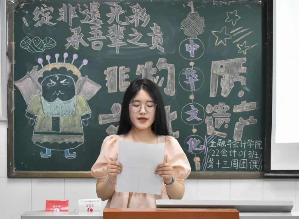 岁月失语,为石能言;薪火相传,方能永存。多姿多彩的非物质文化遗产见证了绵延不息的文化传承,是我们宝贵的精神财富。为了向同学们展示非遗文化的魅力,激发同学们对非遗文化的兴趣,深入挖掘非遗文化的内涵,必赢242net官网于5月11日晚开展“绽非遗光彩,承吾辈之责”为主题的团课活动。