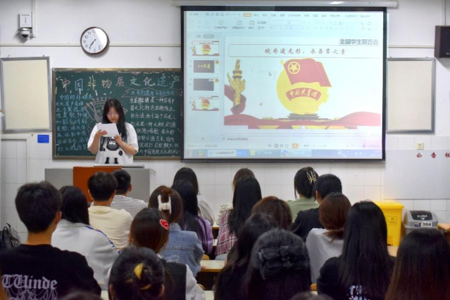 伴随着嘹亮的团歌声,各团支部组织的团课相继开展,在本次团课中,各团支部首先通过形式多样的学习方式使同学们了解了为什么要传承非遗文化,领略到了非遗文化的魅力以及保护非遗文化的重要性。接下来同学们不仅积极分享个人对非遗文化的认识,而且就如何保护、传承非物质文化遗产也有着独到的见解。