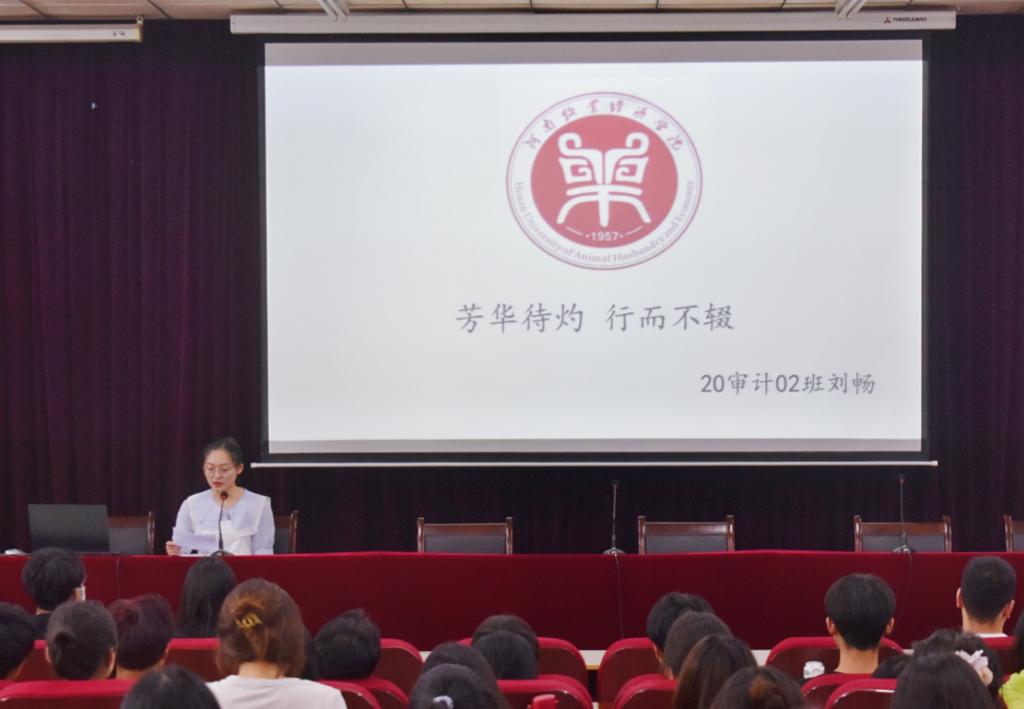 刘畅同学作为国家奖学金的获得者,向同学们分享了她的学习心得:不仅要培养学习兴趣和爱好,还找到适合自己的学习方法。另外,她提醒大家,对于专业课学习要利用好课后习题,梳理同类型知识点;对于通识类课程,要将老师划的重点多巩固,多记忆。