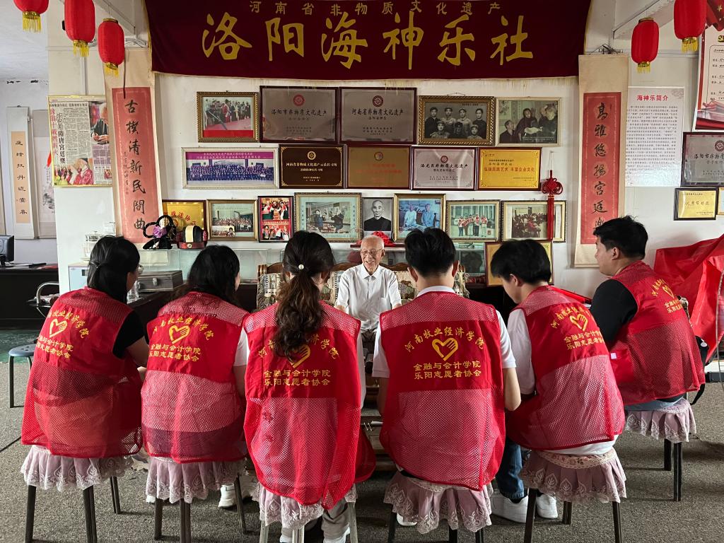 “海神古乐出宫廷,千年遗韵在洛城”。7月5日上午,必赢242net官网暑期非遗实践队前往位于洛龙区的海神乐社,拜访年过八旬的省级非遗项目洛阳海神乐第十代传承人郭红运先生。