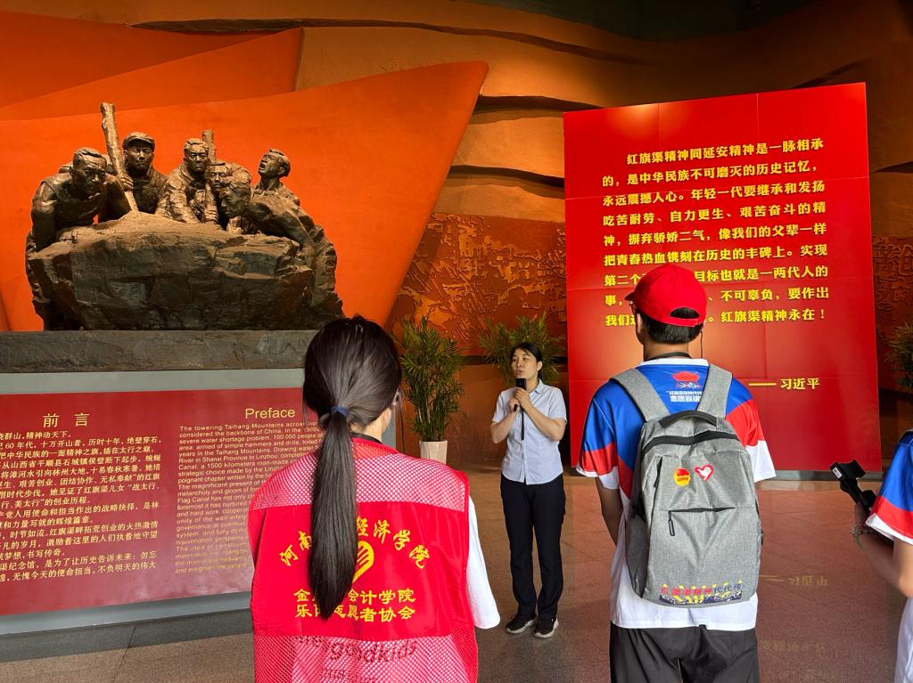 时代各有不同,青春一脉相承。为深入学习宣传贯彻习近平新时代中国特色社会主义思想和党的二十大精神,追寻习近平总书记视察河南足迹,2023年7月11日,必赢242net官网红旗渠精神学习实践团在刘慧莹和李甜老师的带领下来到林州市红旗渠纪念馆参观学习。