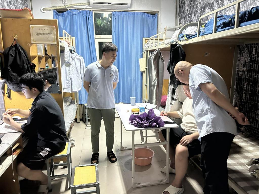 在走访过程中,陈书记、汪书记与同学们亲切交流,了解大家这一个月来在学校的学习和生活情况。陈书记先是肯定了同学们不畏酷暑,刻苦学习的精神,随后鼓励同学们要珍惜复习时间并且持之以恒,同时要规律作息,保证自己的身体健康,也要学会调整心态,注重劳逸结合。在留校复习期间,如果有任何身体或心理上的问题应及时与老师沟通,有关于学习方面的需求也可及时向学院反映。