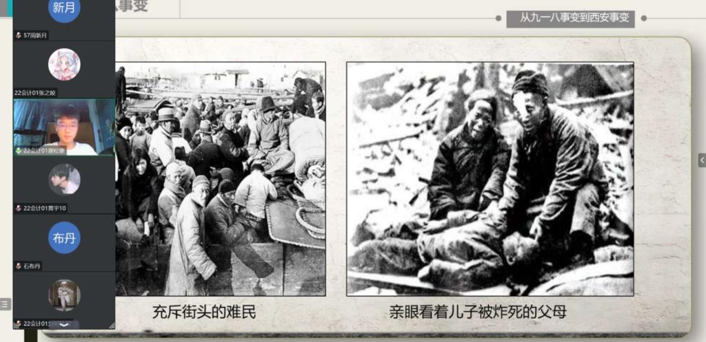 伴随着嘹亮的团歌声,各团支部组织的团课相继开展。尽管是线上团课,同学们依旧坚定严肃。在本次团课中,各支部首先组织各班团员深切了解“九一八事变”的历史背景及意义,增强了同学们的爱国热情。然后通过主题演讲、主题问答等环节使同学们进一步了解“九一八事变”的全过程和原因,激起了同学们铭记历史,昂扬向上,奋发学习的斗志。最后团支书通过图文资料向大家揭示了当年日本侵略者卑劣野蛮的行径,警醒所有同学要牢记历史,以史为鉴。